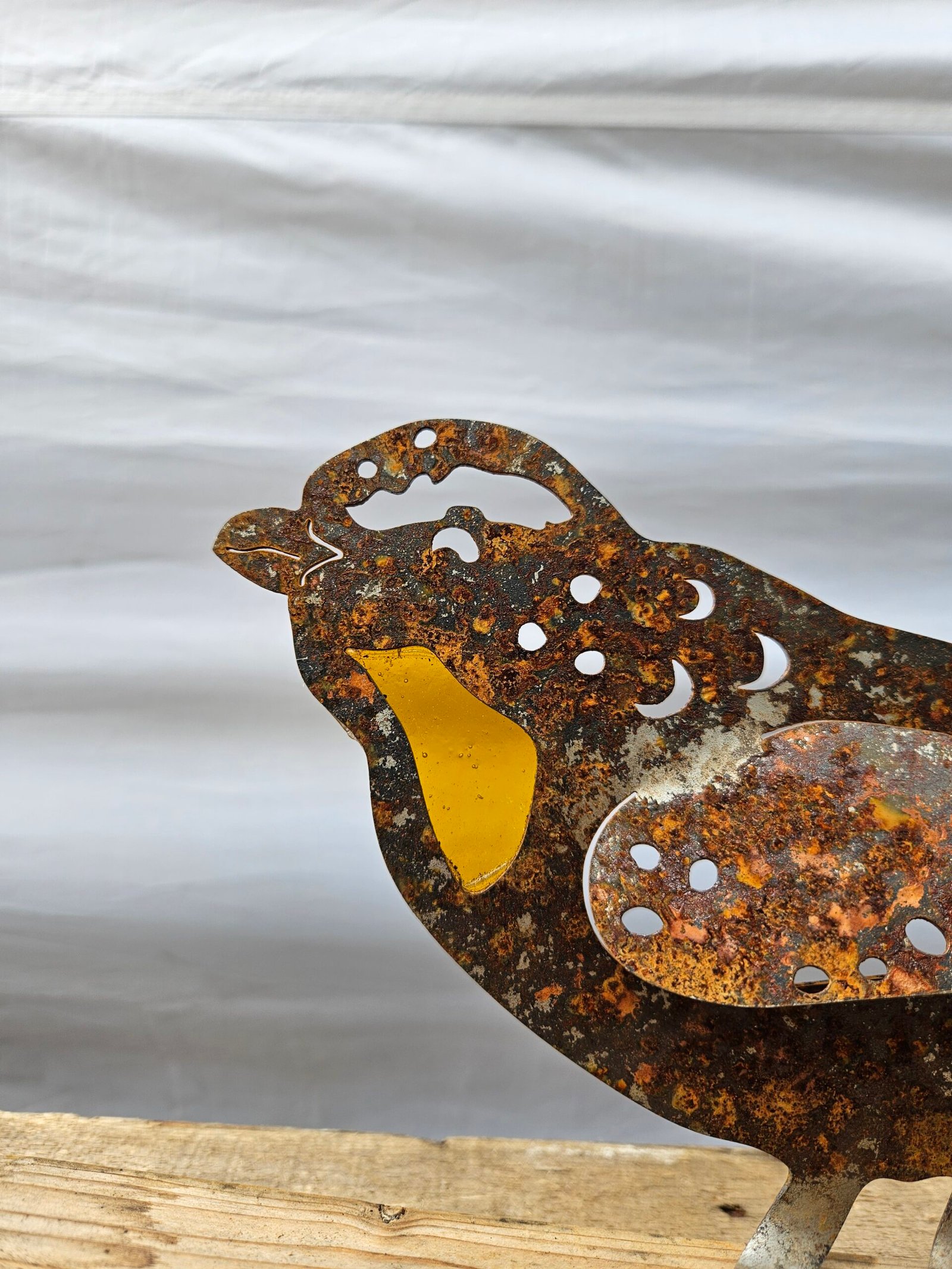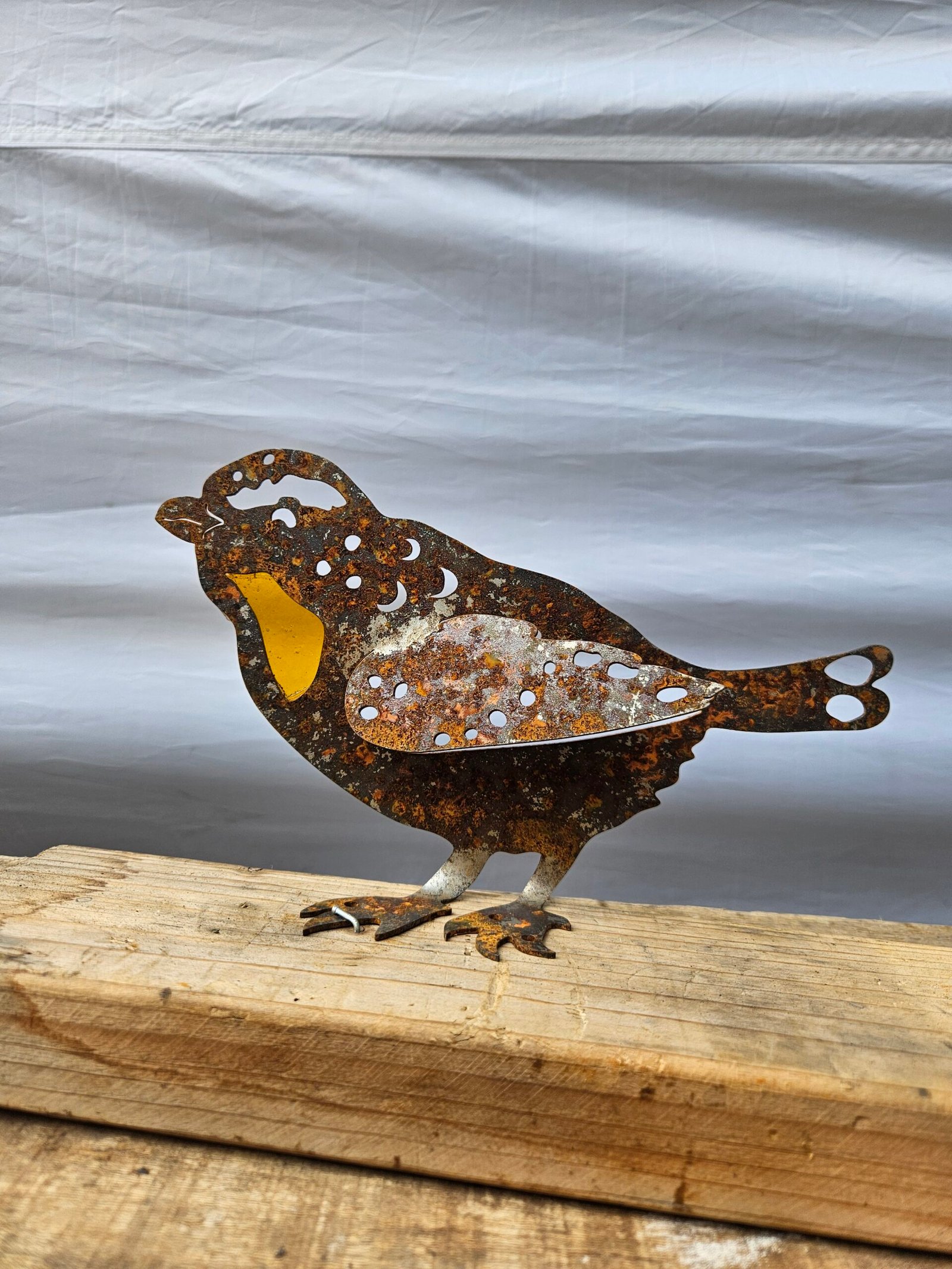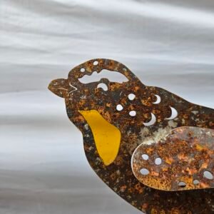 With an eye catching yellow stained glass panel, this spotted pardalote is designed to mount on a flat surface in your garden (e.g. fence posts, edge of the deck).